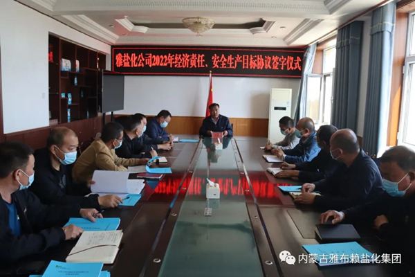 会上,集团公司党委书记、董事长李奎锦分别与副总经理、隆宝化工有限公司、雅布赖染料有限公司、宇鸿能源有限公司执行董事以及各分管单位签订2022年度《经济责任目标协议书》和《安全生产目标责任状》,副总经理徐宪国分别与分管单位签订2022年度《经济责任目标协议书》和《安全生产目标责任状》,通过目标责任书的签订,进一步厘清工作职责,明确工作目标,夯实工作责任,为高质量完成集团公司2022年度生产经营目标和稳增长任务吹响冲锋号角。