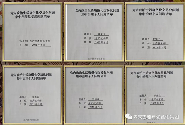 各党支部通过系统梳理党的十九大以来本部门本单位在巡视巡察、纪检监察、巡视巡察、群众反映、信访举报中发现的党内政治生活庸俗化交易化问题,对照党内政治生活庸俗化交易化问题清单、对照典型案例等进行了认真对照检查,制定问题清单和整改台账。