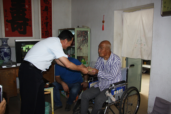 在每位离休老同志的家中,张局长一行代表盟委、行署向老干部送上问候和祝福,关切地询问他们的身体情况和生活情况,深入了解他们的各项生活费用和医药费落实情况,并为每位老人送上1000元慰问金,祝愿他们保重身体,安享晚年。三位离休老人非常感动,对盟委、行署对他们的关心和厚爱表示感谢。